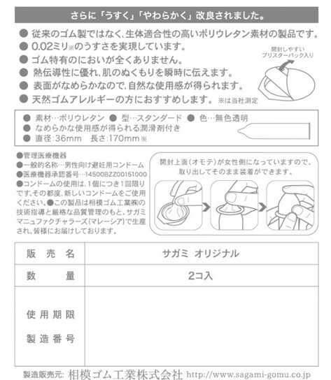 | 商品名 | サガミオリジナル0.02 2個入り |