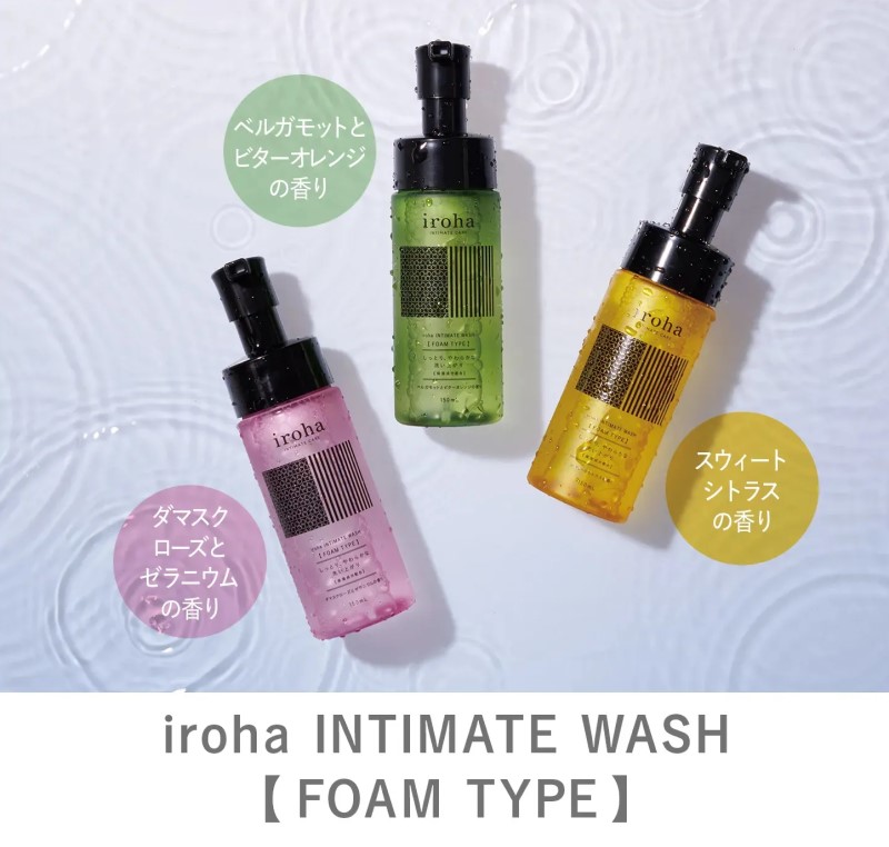 ベストコスメアワード2023・2024デリケートゾーンケア部門1位受賞!普段は手を抜きがちなデリケートゾーン専用、弱酸性でふわふわのきめ細かな泡が優しく汚れを洗い流してくれる「iroha インティメートウォッシュ(フォームタイプ)」。香りは「スウィートシトラス」「ダマスクローズとゼラニウム」「よもぎブレンドの香り」の全4種類。