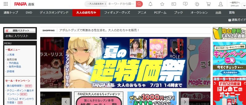 アダルトグッズは、セルフプレジャーを盛り上げる大事なアイテムです。しかし、おかずがなければ楽しい時間を過ごせません。男性ならAVやエロアニメ、女性なら乙女ゲーやBLものの同人漫画などが充実したサイトを選んでおくと、ワンストップで性生活を充実させることが可能です。たとえばFANZA」が、これらの条件を満たしているので、1度はサイトを確認しておくことをおすすめします。