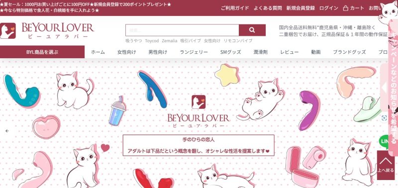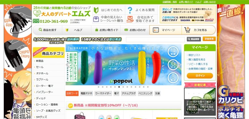 7千アイテムを取り扱っている大人のデパートエムズは、マニアックなSMものが充実しているサイトです。ニップルクランンクやSM拘束具など500アイテム越える品揃えが魅力です。会員登録すれば、ランクによって割引も適用されるので、場合によっては他のサイトより安く購入できることもあります。コスプレやランジェリー、お風呂グッズも充実しているため、彼女と一緒に楽しめる商品をお探しの方にもおすすめです。