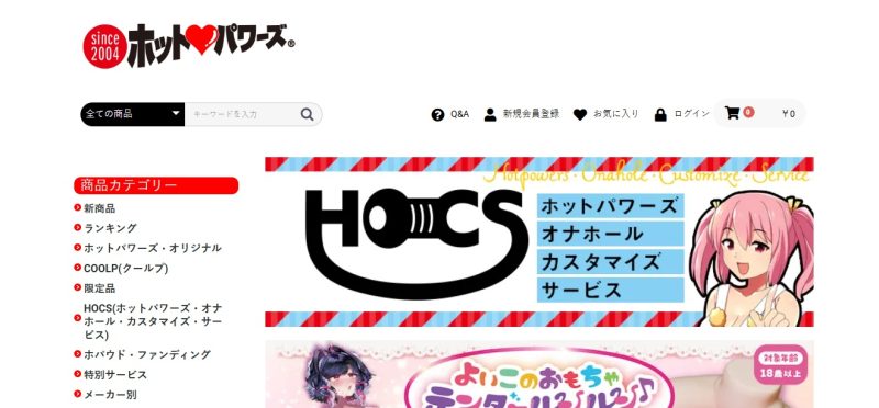 ホットパワーズは、自社でオナホールを製造してるメーカーです。通販サイトでは、自分でカスタマイズできるオナホールも販売している点が魅力です。受注生産の限定オナホールは、販売と同時に売り切れるほどの人気となっています。取扱商品は17,800アイテム以上。SMグッズも充実しており、その数967アイテム。初心者向けのSMロープやアイマスクなども揃えています。