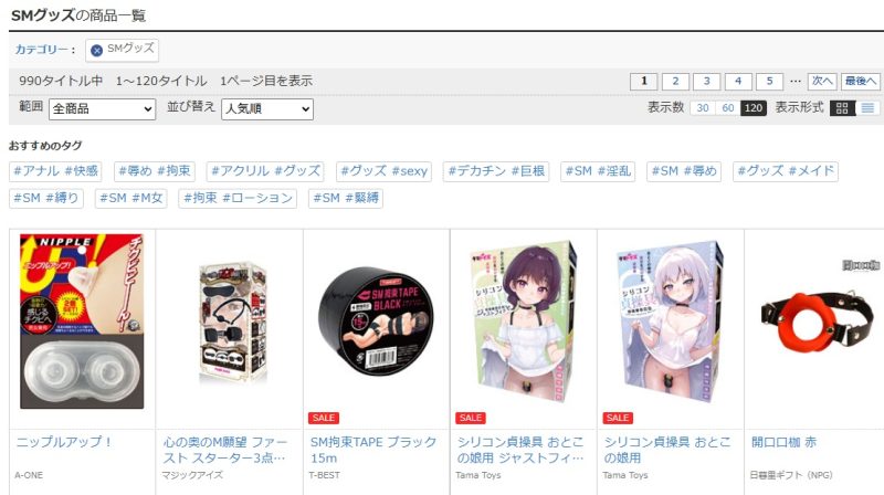 変態・マニアック志向が強い方は、SMグッズやアナルバイブなど特殊なアダルトグッズが充実しているサイトを選ぶことが大事です。たとえば「FANZA」はSMグッズ990アイテム、アナル用ディルド1,112アイテムを販売中。エロ下着やリアルドールなども充実しています。ニッチなエネマアイテムまで購入できるので、変態・マニアック志向が強い方は、「FANZA」を抑えておけば間違いなし!「NLS」もラインナップが充実しているので、合わせてチェックしておくことをおすすめします。